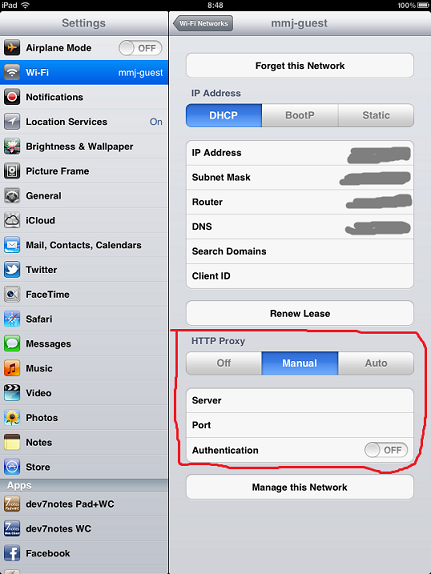 Did you check the network (proxy) settings on your device (iPad/iPhone)?