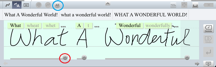 When you tap the ^ icon (in the red circle) on the mazec screen, you find alternative recognized words such as What, what, WHAT, etc.