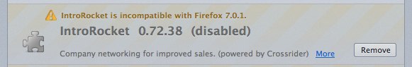 Firefox 7 is reporting our Crossrider extension as incompatible.