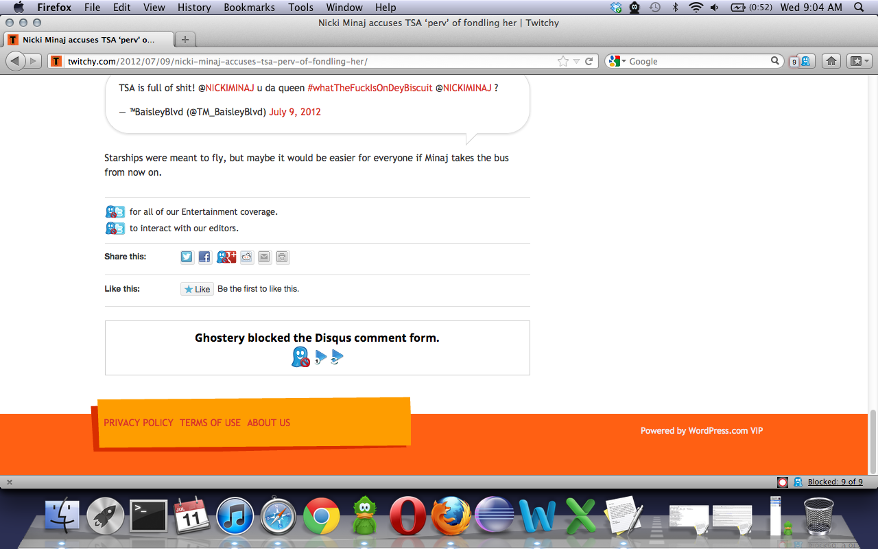 As has been reported many times here, your tool negatively impacts the functionality of Disqus. I've excepted Disqus from blocking AND I've added it to your 'whitelist'. Additionally, it is given an exception in my browser (Firefox 13.0.1). Still, I am unable to login. Amazingly, when I remove Ghostery, everything works fine, which is how I will be running from now on.