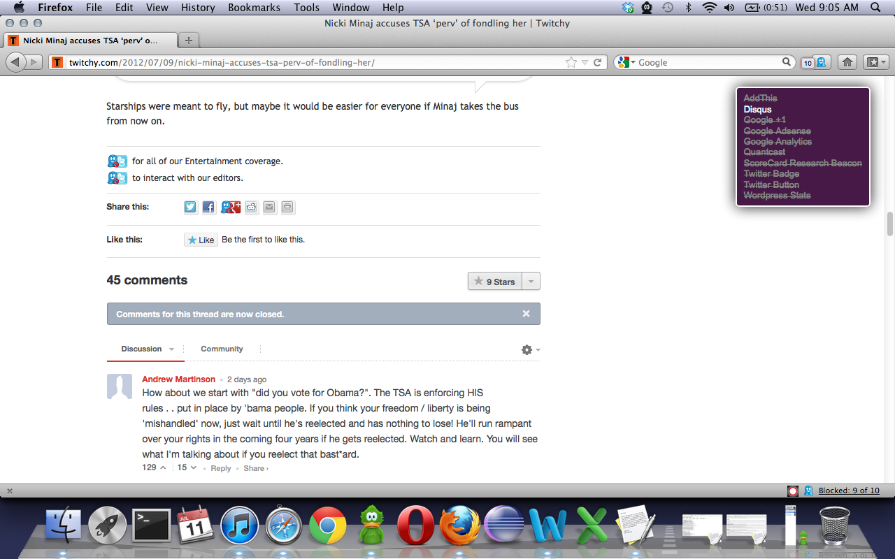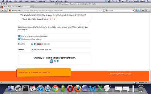I'm using Ghostery and have enabled Disqus (as I like reading comments). I've also whitelisted disqus.com.