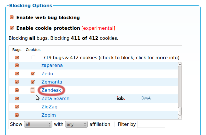 Where I'd only wish to disable cookie protection for the zendesk.com domain.
