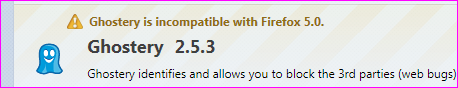 I have been building an alternate profile on my Win7/32 Ultimate box. When I added Ghostery from https://addons.mozilla.org/en-US/fire... v 2.5.3 I got the compatibilty message.