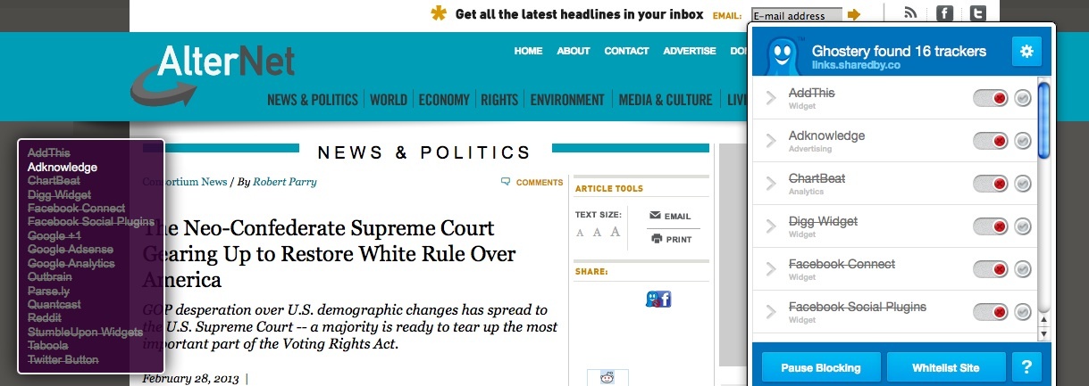Adknowledge is not being blocked on some websites (but Ghostery indicates that it is blocked).
