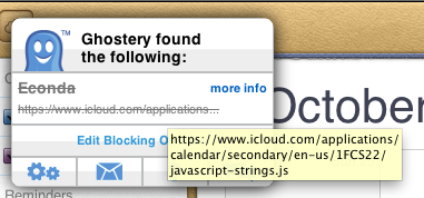 Additionally, based on the scripts being blocked, it would appear that the detection is a false positive (unless I've missed something). Ghostery wants to block "Econda" http://www.ghostery.com/apps/econda on icloud.com and from looking at the icloud calendar web app in Safari's web inspector, I don't see any evidence of Econda.