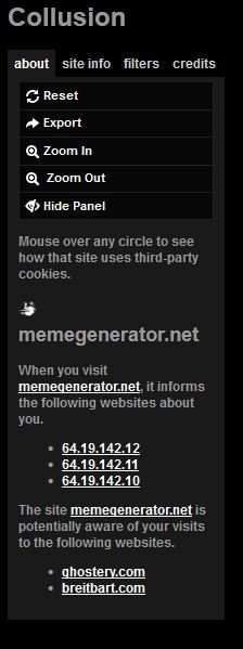 Although I have GhostRank unchecked, Collusion shows breitbart.com is reporting to Ghostery.com and shows also that Ghostery.com is reporting to memegenerator.net. What gives?
