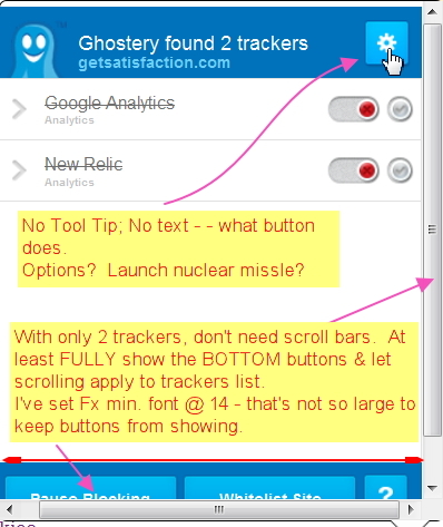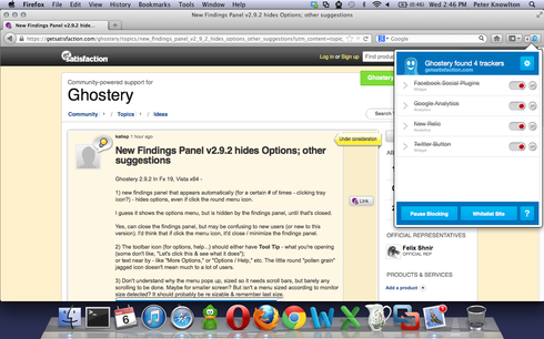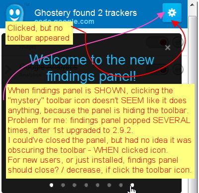 1) new findings panel that appears automatically (for a certain # of times - clicking tray icon?) - hides options, even if click the round menu icon.