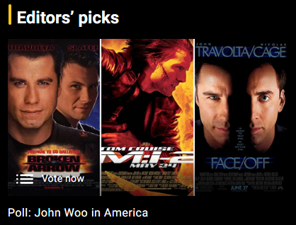Did people not understand the question? It wasn't which American movie was Woo's best movie, it was which one best represented his Hong form. Clearly, to anyone that has seen a Woo HK actioner, that Hard Target (his first US film) was the closest. Face-Off and MI-2 were merely his most successful.
