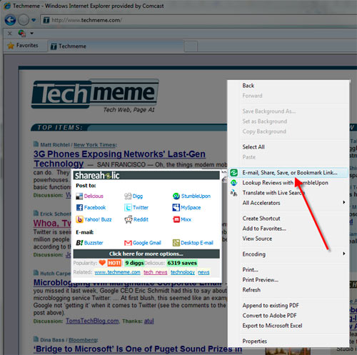 Shareaholic Internet Explorer 8 Accelerator